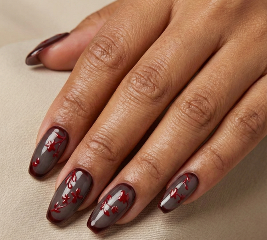 Wine Red 3D Flora - Smoky Black Jelly Base - Valentine Art - Gothic Vampire Aesthetic - Dark Feminine Textured Gel - Custom Size Set - PN251213