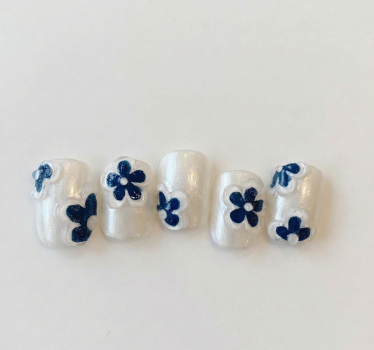 3D White Flower Press On Nails - Coquette Heart Swirls - Korean Soft Girl Aesthetic - Bridal Spring Manicure - Custom Size Set - PN251164