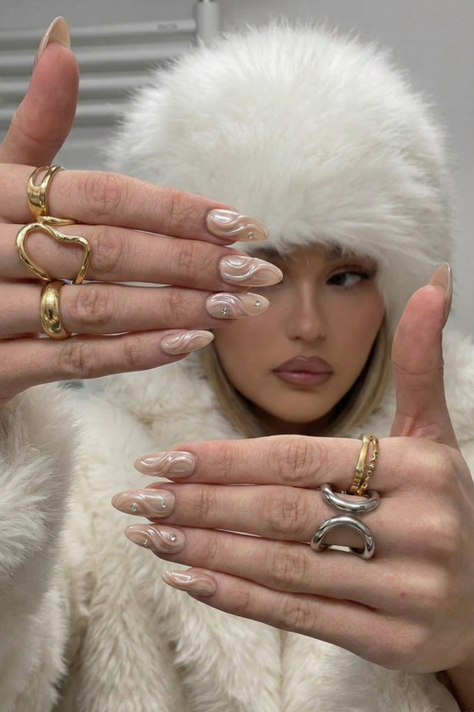 Champagne Pearl 3D Swirl Press On Nails - Textured Wave Art - Old Money Jewelry - Bridal Wedding - Custom Size Set - PN251195