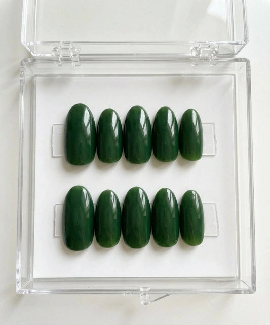 Dark Jade Green Press On Nails - Deep Emerald Jelly - Old Money Gemstone Aesthetic - Glossy False Nails - Custom Size Set - PN251156