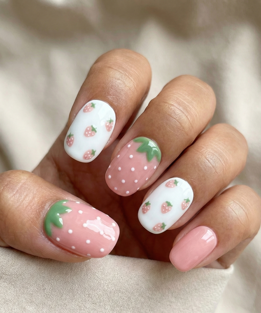 Indie Kid Mix & Match Press On Nails - Cherry Rainbow Cloud Art - Checkerboard Flower Pattern - Spring Summer Gel - PN251244