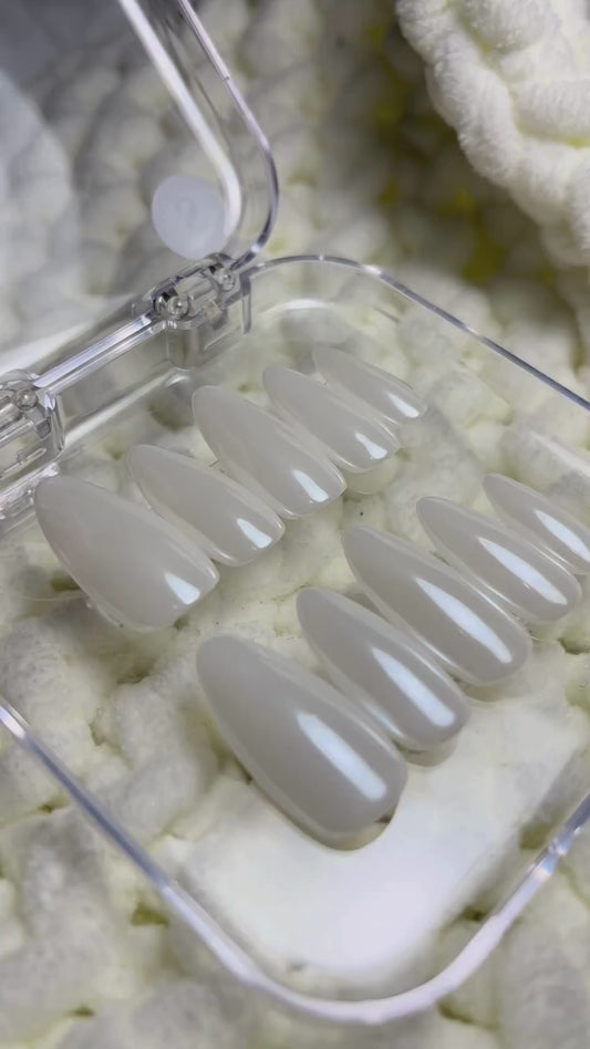 Milky White Glazed Press On Nails - Clean Girl Aesthetic - Minimalist Bridal Wedding Soft Chrome Gel Manicure - Custom Size Set - PN251145