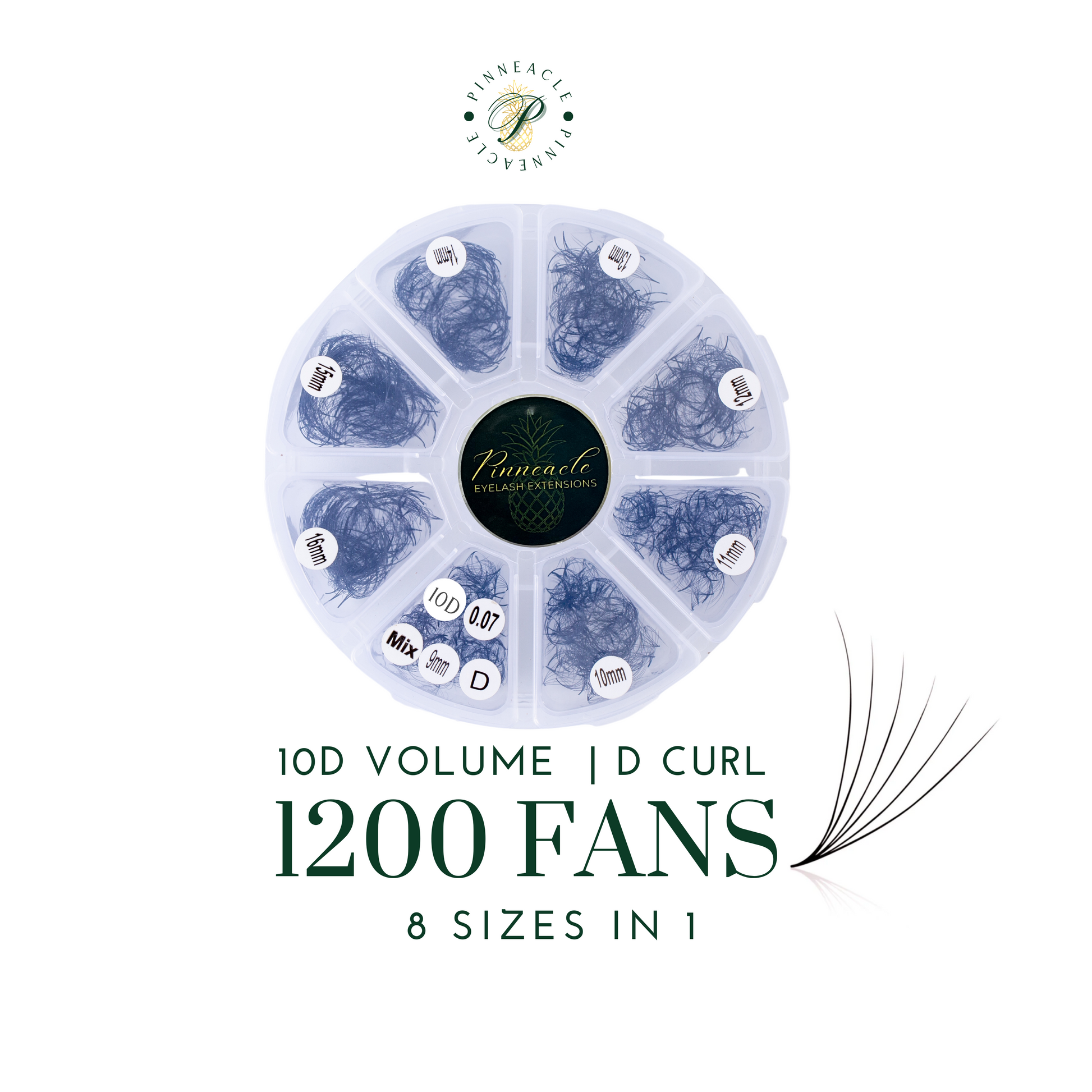 1200 Premade VolumeFans - 8 sizes in 1 box | Lengths: 9 -16mm | Round Box | 10D