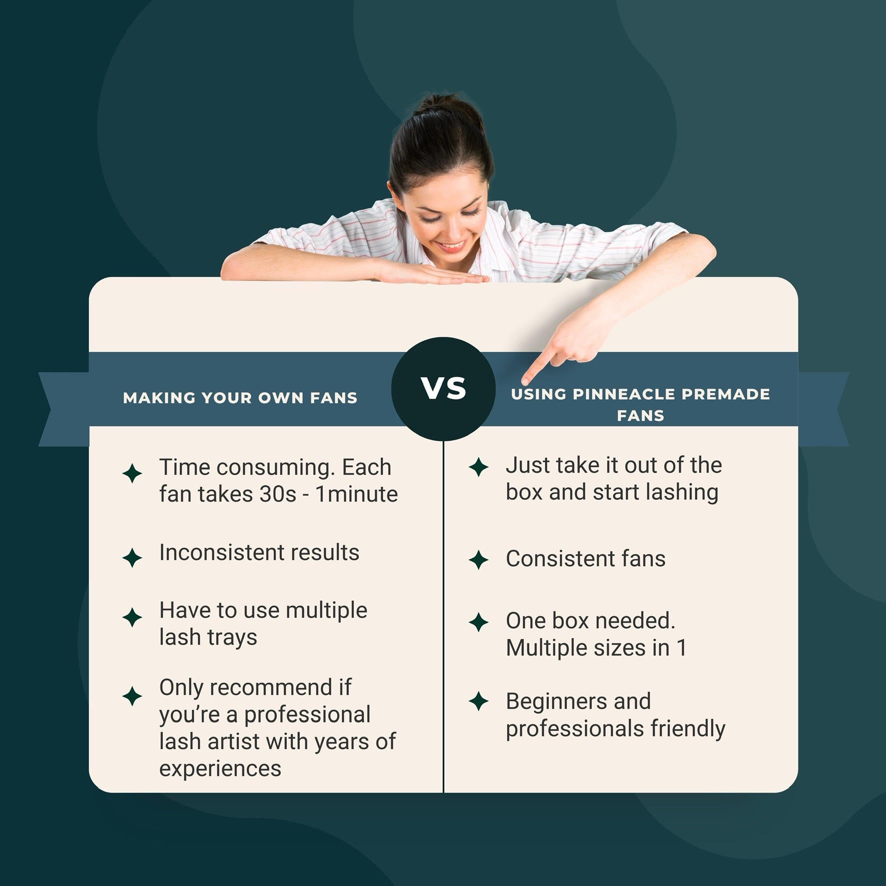 A Vision for Beauty: Our mission is rooted in the vision of seeing more women embrace their beauty with confidence through stunning lashes. At the same time, we're dedicated to helping artists save time and energy, so they can continue creating beauty in every appointment.