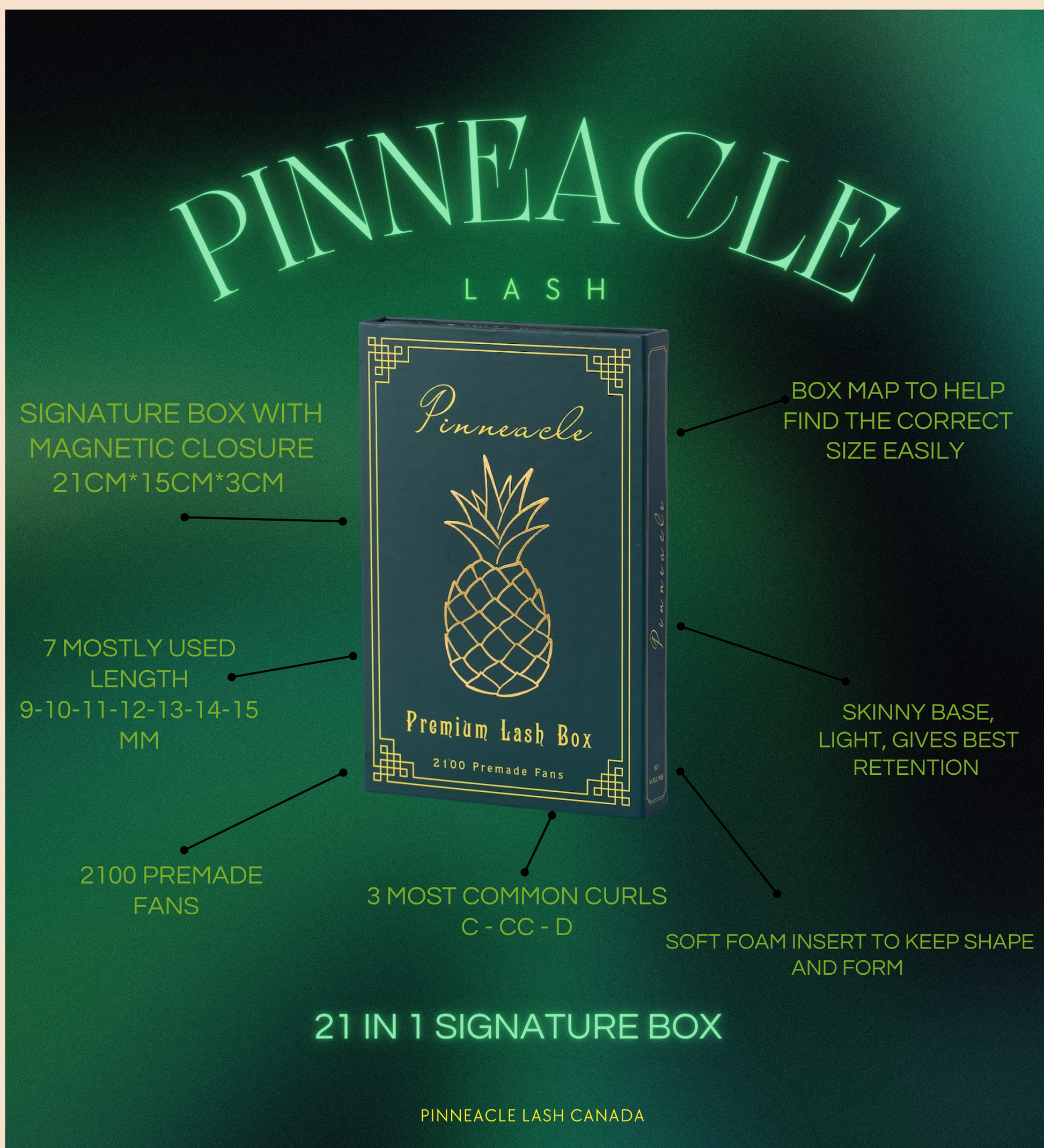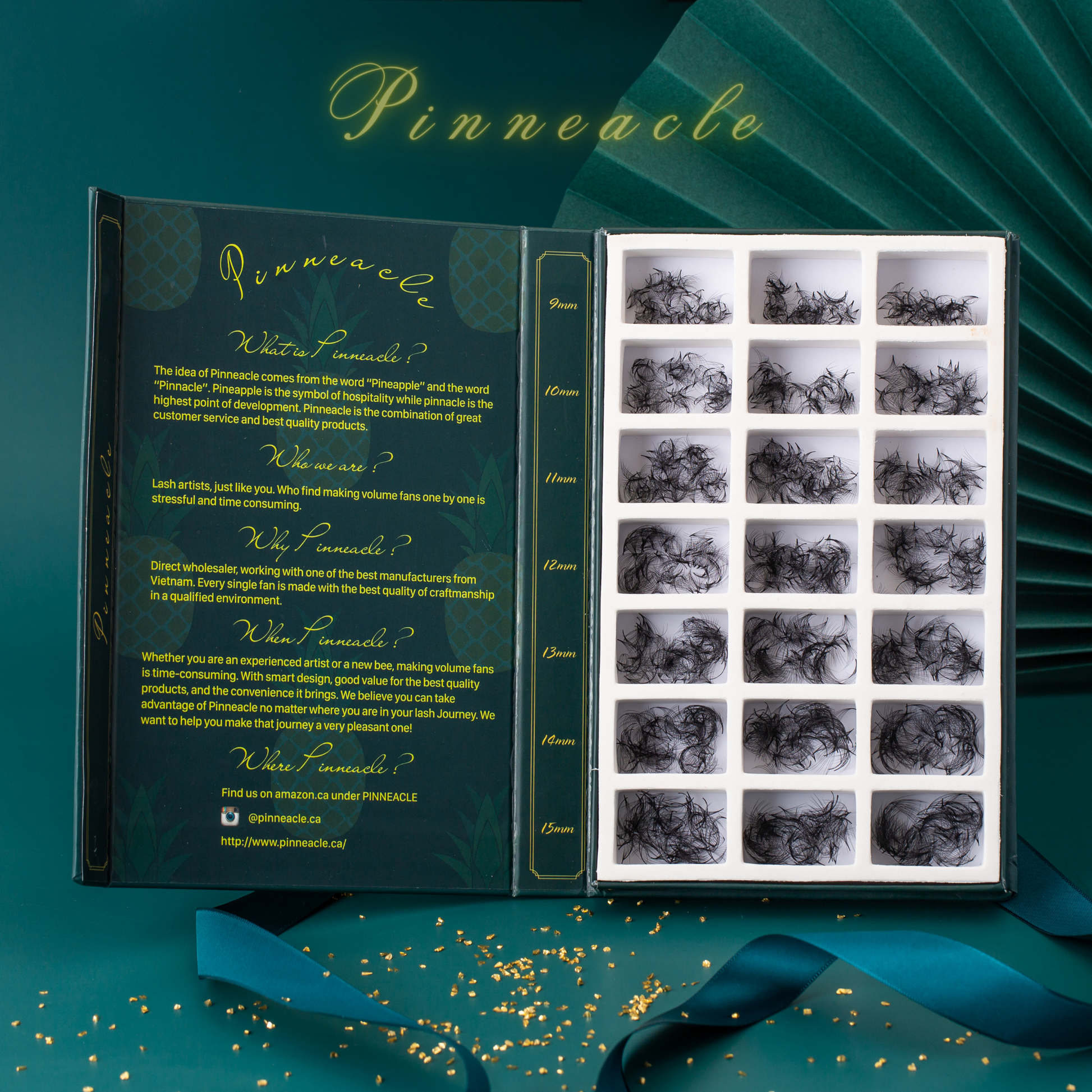 21 different sizes in a single box. This extensive selection ensures that lash artists have the perfect fan size for every client, every style, and every occasion.
