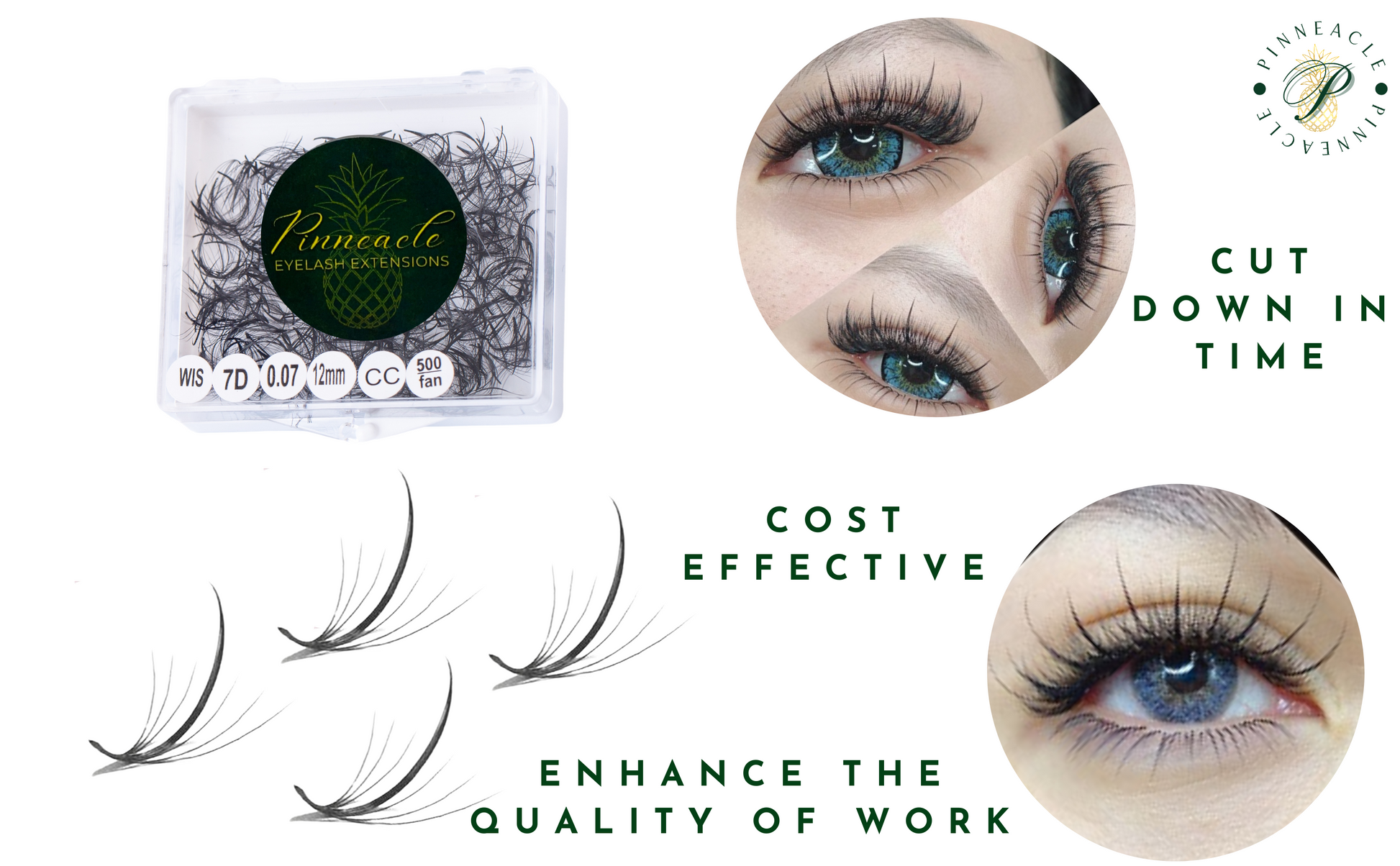 Effortless Wispy Lashes: Pre-made wispy fans with closed spikes and a volume base for quick and easy application, cutting your lash set creation time in half.